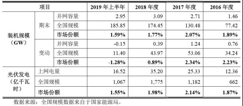 截至2019年6月末,晶科電力已并網(wǎng)裝機容量約2.95GW,其中地面集中式電站2.16GW,屋頂分布式電站790MW,分布在浙江、江蘇、河北、安徽、寧夏、青海等20多個省份,占2019年6月末我國光伏累計裝機容量的1.59%。2019年競價及第一批平價項目申報中,晶科電力共入選約480MW項目,在民營企業(yè)中排名前列。
