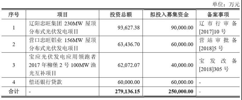 在補貼問題難以解決的情況下,晶科電力期望以尋求上市的方式緩解資金壓力。在晶科電力披露的招股說明書中提到,晶科電力擬募集25億元,用于屋頂分布式光伏項目建設(shè)、領(lǐng)跑者項目建設(shè)及償還銀行貸款。其中還款一項投入金額為6億元,占總募集金額的24%,如此高額的比例也一定程度上反映了晶科電力的資金壓力。