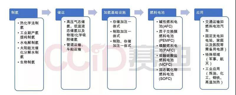 氫能產(chǎn)業(yè)鏈關(guān)鍵環(huán)節(jié)主要包括制氫、儲運(yùn)、加氫基礎(chǔ)設(shè)施以及氫燃料電池以及氫應(yīng)用等。