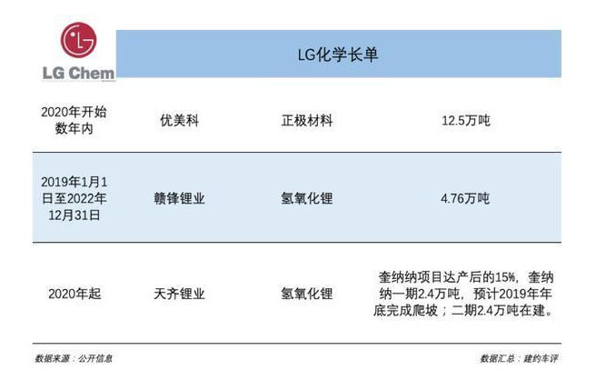 LG化學(xué)與中國的鋰礦兩巨頭贛鋒鋰業(yè)和天齊鋰業(yè)分別簽訂了長單采購協(xié)議。