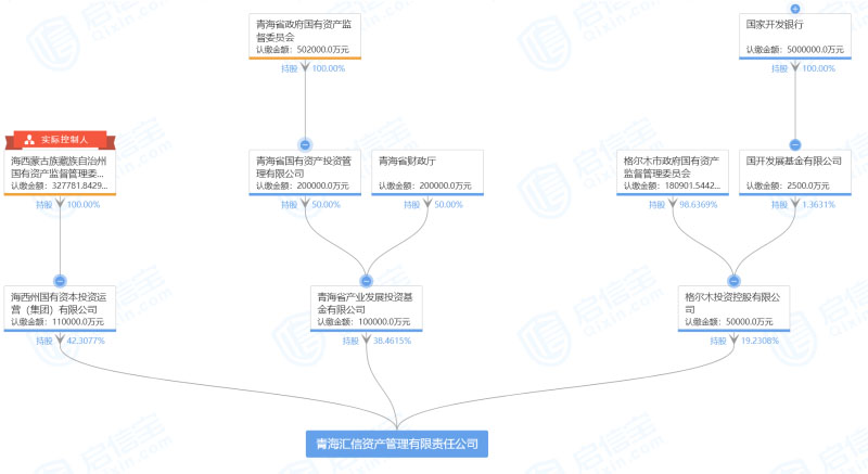 啟信寶數(shù)據(jù)顯示,青海匯信成立于2019年12月中旬,注冊(cè)資本26億元,第一大股東為海西州國(guó)有資本投資運(yùn)營(yíng)(集團(tuán))有限公司,持股比例為42.31%,另外兩大股東為青海省產(chǎn)業(yè)發(fā)展投資基金有限公司和格爾木投資控股有限公司,分別持股38.46%和19.23%。上述三大股東的背后則是青海當(dāng)?shù)厥?、市(州)的?guó)資委或財(cái)政部門。