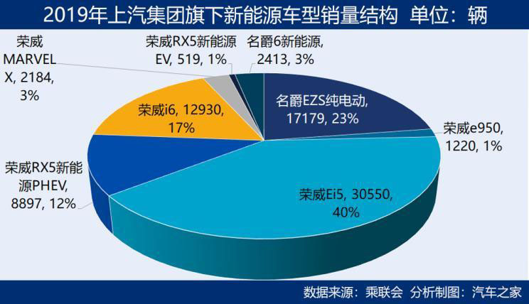 上汽集團(tuán)的新能源車型有榮威和名爵兩個(gè)板塊,榮威品牌是上汽集團(tuán)的新能源“老家底”,而名爵品牌去年開始推出純電動(dòng)車型和插電式混合動(dòng)力車型各一款。2019年上汽集團(tuán)銷量中純電動(dòng)車型5.04萬(wàn)輛,插電式混合動(dòng)力車型2.55萬(wàn)輛。12月份的銷量沖高,主要來(lái)自榮威Ei5的貢獻(xiàn)。即便如此,2019年全年上汽集團(tuán)旗下新能源車銷量還是同比下降了21.75%。