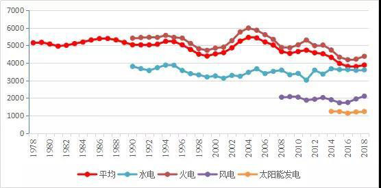 ▲圖2:1978年-2018年分類型發(fā)電設備利用小時數(shù)