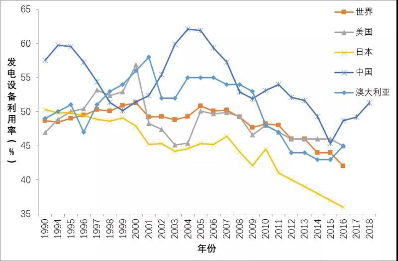▲圖1:世界和部分國家的發(fā)電設備利用率變化情況