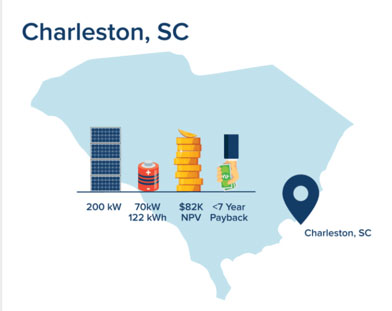 盡管受到監(jiān)管機(jī)構(gòu)的不利影響,但在查爾斯頓這樣的城市,太陽能+儲(chǔ)能系統(tǒng)可以在不到7年的時(shí)間內(nèi)收回投資,這要受到海岸電力合作社的高需求費(fèi)用(大于16美元/千瓦)和使用時(shí)間費(fèi)率(TOU)結(jié)構(gòu)的限制。對(duì)于南卡羅來納州的典型中型商業(yè)客戶來說,每年節(jié)省的電費(fèi)為15萬美元。