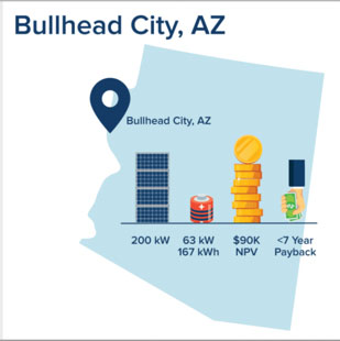 電池儲(chǔ)能系統(tǒng)的部署也正在迅速變得經(jīng)濟(jì),特別是對(duì)于像布爾黑德市這樣的城市中的居民來說,其商業(yè)需求收費(fèi)高(每千瓦15美元)加上使用時(shí)間費(fèi)率(TOU)結(jié)構(gòu)。對(duì)于這些客戶來說,太陽能+儲(chǔ)能系統(tǒng)將在不到7年的時(shí)間內(nèi)收回投資。對(duì)于亞利桑那州的典型中型商業(yè)客戶來說,每年將節(jié)省12萬美元的電費(fèi)。