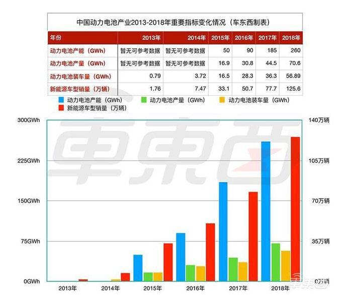 產(chǎn)量則從2016年的30.8GWh,增長(zhǎng)至2018年的70.6GWh;產(chǎn)能從2016年的90GWh,增長(zhǎng)至2018年的260GWh。