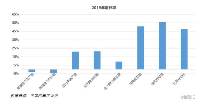 我們拿2019年新能源汽車、動(dòng)力電池、充電樁的數(shù)據(jù)做來(lái)做個(gè)簡(jiǎn)單的對(duì)比。