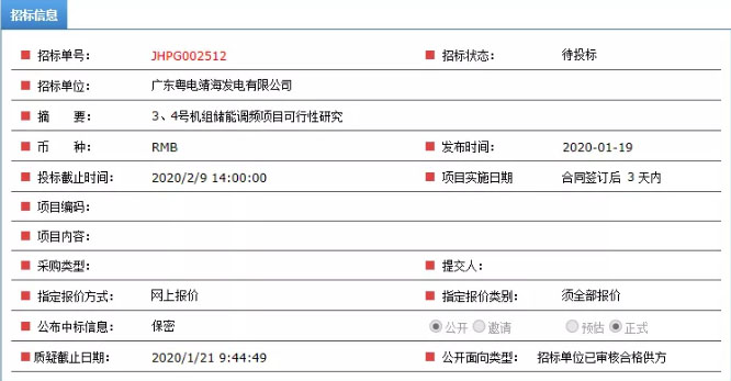 中國儲能網(wǎng)訊:近日,廣東粵電靖海發(fā)電有限公司擬對“3、4號機組儲能調頻項目可行性研究 ”進行招標。據(jù)了解3/4號機組是在2×1000MW國產超臨界燃煤機組側安裝建設儲能系統(tǒng)。