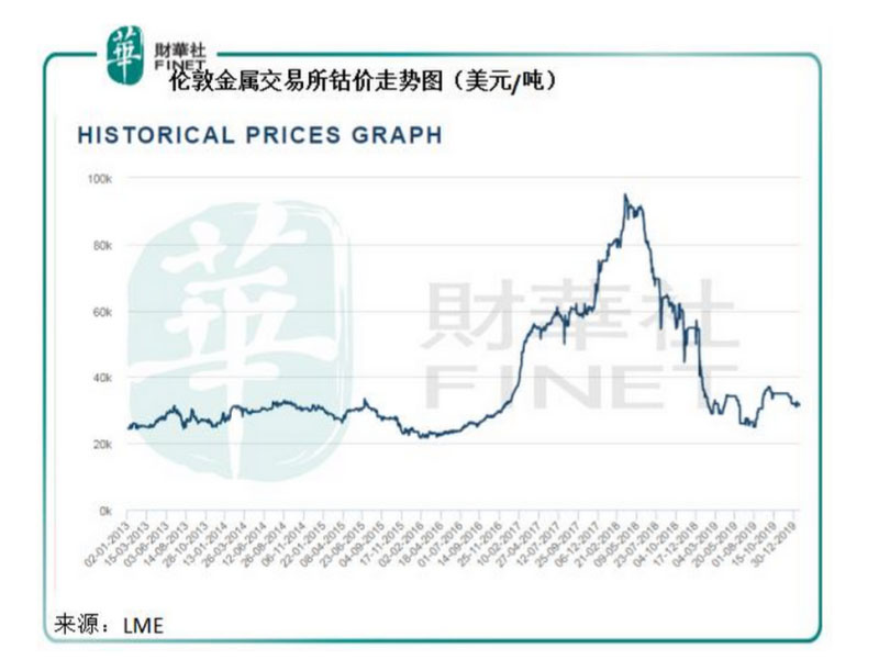 2019年第三季,鈷價(jià)有所回升,從7月時(shí)的25000美元,反彈至2020年1月22日的31500美元。據(jù)報(bào)道,嘉能可或提早一個(gè)月停止Mutanda的生產(chǎn)以進(jìn)行維修保養(yǎng),兩年后重開,該礦的鈷產(chǎn)量或占全球供應(yīng)量近兩成。這一來,或可令全球的鈷供求關(guān)系發(fā)生變化。