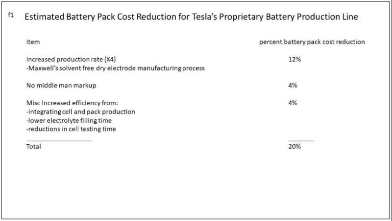 再者,假設(shè)雜項(xiàng)費(fèi)用降低4%,整體上看Maxwell干電池電極技術(shù)可為電芯制造帶來20%的降本效果。