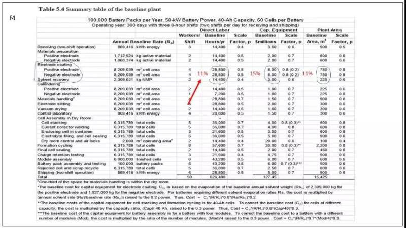George Bower在文章中引用阿貢實(shí)驗(yàn)室的報(bào)告內(nèi)容,“與溶劑型電極涂覆工藝相關(guān)的直接人工成本占PACK總?cè)斯こ杀镜?1%,設(shè)備成本占工廠設(shè)備總成本的15%,占地面積是總工廠面積的11%。”