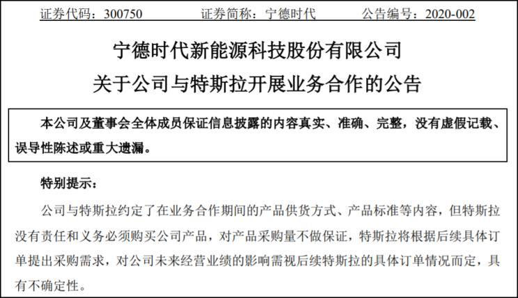『寧德時(shí)代公告確認(rèn)與特斯拉合作正在推進(jìn)中』