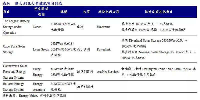 大型項(xiàng)目助推。2017年12月,南澳大利亞州100MW/129MWh電池儲(chǔ)能項(xiàng)目投運(yùn),是當(dāng)時(shí)全球最大的儲(chǔ)能項(xiàng)目Hornsdale Power Reserve。該項(xiàng)目產(chǎn)品由特斯拉提供,運(yùn)營(yíng)商是法國(guó)Neoen公司,主要用于調(diào)頻及新能源消納。該項(xiàng)目的背景是南澳大利亞州的大停電事件。澳大利亞政府向全球招標(biāo)大規(guī)模儲(chǔ)能項(xiàng)目,以解決電力系統(tǒng)穩(wěn)定問(wèn)題。2019年11月,Neoen宣布將該儲(chǔ)能項(xiàng)目擴(kuò)容50%。該項(xiàng)目主要通過(guò)調(diào)頻和現(xiàn)貨市場(chǎng)獲取經(jīng)濟(jì)利益。