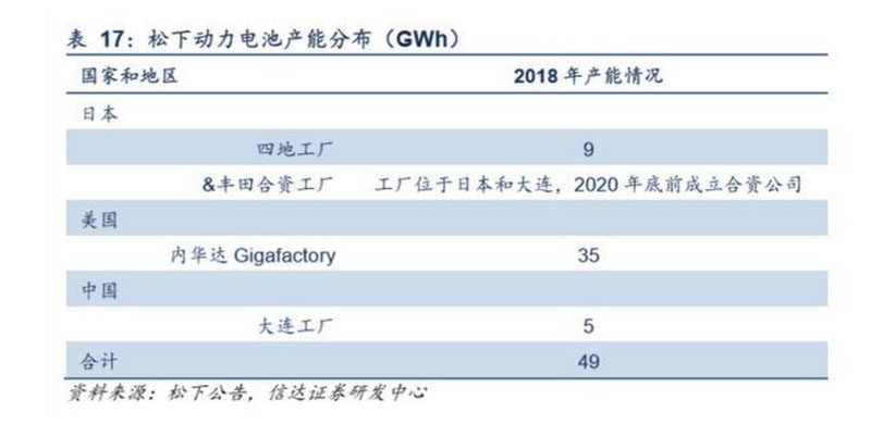 松下早期受益綁定特斯拉,未來(lái)產(chǎn)能建設(shè)稍顯滯后。松下得益與特斯拉的綁定,早年動(dòng)力電池出貨量一直維持行業(yè)第一位置, 直至2017年被CATL超越。從產(chǎn)能來(lái)看,其大產(chǎn)能即為在美國(guó)內(nèi)華達(dá)州與特斯拉合建的35GWh Gigafactory產(chǎn)能,其在 日本的四地工廠約有9GWh產(chǎn)能,同時(shí)其大連產(chǎn)能于2018年3月開始量產(chǎn)出貨,主要生產(chǎn)三元方形電池,約有5GWh產(chǎn)能。 整體看,相比同行業(yè)其余龍頭,松下擴(kuò)產(chǎn)計(jì)劃稍顯滯后。目前看,其僅有與豐田的合資擴(kuò)產(chǎn)規(guī)劃。雙方擬在2020年底前設(shè)立 合資公司,從事新能源汽車用方形電池產(chǎn)品業(yè)務(wù)。