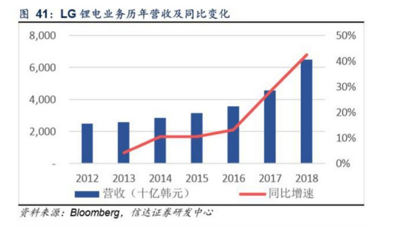 近年來(lái)LG化學(xué)鋰電業(yè)務(wù)業(yè)績(jī)保持增長(zhǎng)態(tài)勢(shì),2018年實(shí)現(xiàn)營(yíng)收6.4萬(wàn)億韓元(約392億人民幣),同比增長(zhǎng)43%,實(shí)現(xiàn)營(yíng)業(yè) 利潤(rùn)2092億韓元(約12.6億人民幣),同比增長(zhǎng)6.24x,對(duì)應(yīng)營(yíng)業(yè)利潤(rùn)率水平為3.2%。
