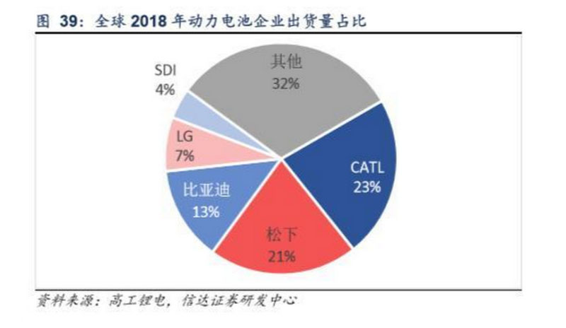 從動(dòng)力電池企業(yè)裝機(jī)規(guī)模看,CATL受中國(guó)新能源汽車市場(chǎng)快速發(fā)展,市占率排名全球第一,達(dá)23%;松下受益特斯拉銷量 放量,以21%的市占率排名第二。比亞迪、LG和三星SDI為行業(yè)第二梯隊(duì),市占率分別為13%、7%和4%。