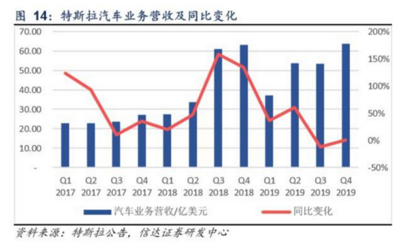 銷量增長(zhǎng)及降本有效對(duì)沖價(jià)格下降壓力,Q3/Q4持續(xù)盈利。三、四季度,受車輛租賃業(yè)務(wù)比例提升及公司調(diào)整汽車售價(jià)影響, 公司營(yíng)收增速不及交付量增速,全年汽車業(yè)務(wù)實(shí)現(xiàn)營(yíng)收208.2億美元,同比增長(zhǎng)12.5%,其中四季度實(shí)現(xiàn)63.7億美元,同比 增長(zhǎng)0.7%。Model 3產(chǎn)線標(biāo)準(zhǔn)化推進(jìn)有效降低成本,對(duì)沖售價(jià)下降壓力,四季度汽車業(yè)務(wù)毛利率為22.5%,環(huán)比基本維持穩(wěn) 定。綜合來(lái)看,自三季度扭虧以來(lái),公司四季度實(shí)現(xiàn)凈利潤(rùn)1.05億美元,持續(xù)盈利。