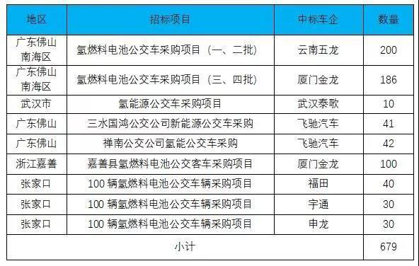 現(xiàn)階段,政府采購仍主導(dǎo)著我國氫燃料電池車的銷售。據(jù)國發(fā)能研院、綠能智庫不完全統(tǒng)計,2019年全國已有10個省、直轄市投入運營近400輛燃料電池公交客車。梳理2019年幾項重點招標(biāo),燃料電池公交車政府采購數(shù)量達(dá)679輛。