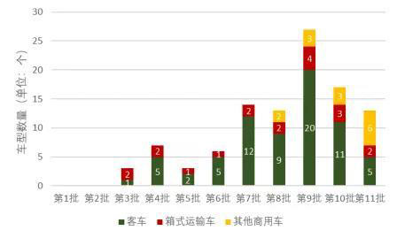 圖1 《新能源汽車推廣目錄車型信息》各批燃料電池車車型分布