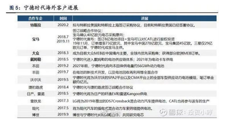 這一政策直接排除了松下和三星的競(jìng)爭(zhēng),為國(guó)內(nèi)電池企業(yè)發(fā)展壯大立下了汗馬功勞。同時(shí)寧德時(shí)代抓住這個(gè)有利時(shí)機(jī),展開與華晨寶馬的合作,取得了寶馬背書,順利打開國(guó)內(nèi)外乘用車市場(chǎng),合作伙伴遍布國(guó)內(nèi)外主要車企。