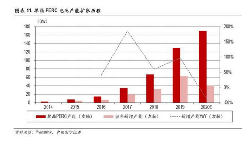 我們預(yù)計(jì),目前異質(zhì)結(jié)電池非硅成本水平大致位于 0.6-0.7元/W區(qū)間,相對(duì)于 0.4-0.5元/W的目標(biāo)仍有 一定幅度的差距。就非硅成本的組成而言,異質(zhì)結(jié)電池在低溫銀漿、設(shè)備折舊、靶材耗用等方面均 有較大的降本潛力。此外,MBB 多主柵等工藝改進(jìn)亦有望在降低輔材消耗的同時(shí)提升異質(zhì)結(jié)電池的 轉(zhuǎn)換效率。我們預(yù)計(jì)當(dāng)異質(zhì)結(jié)電池突破性?xún)r(jià)比臨界點(diǎn)后,異質(zhì)結(jié)電池的替代有望快速推進(jìn),行業(yè)產(chǎn) 能或復(fù)制近年單晶 PERC的擴(kuò)張進(jìn)程。