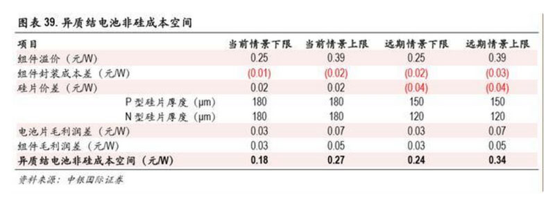 當(dāng)前組件溢價(jià)可允許 HJT 非硅成本高出 0.18-0.27 元/W