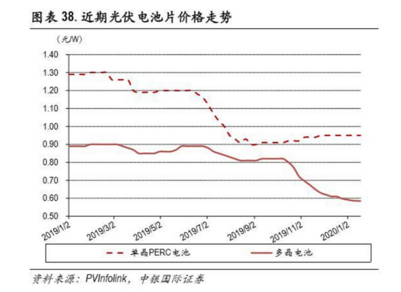 從市場(chǎng)情況來(lái)看,2019 年三季度由于國(guó)內(nèi)光伏需求啟動(dòng)晚于預(yù)期加之新產(chǎn)能投放較快,單晶 PERC 電池經(jīng)歷了一波較大幅度的價(jià)格調(diào)整,價(jià)格由 1.2元/W附近下滑至約 0.9元/W,后續(xù)在 2019年四季度 略有回升。在 0.9元/W附近的價(jià)格水平下,行業(yè)頭部企業(yè)毛利潤(rùn)空間基本位于 0.1-0.15元/W區(qū)間。我 們考慮目前異質(zhì)結(jié)電池生產(chǎn)線約 7億元/GW的初始投資水平,按產(chǎn)能投資回收期 4-5年計(jì)算,測(cè)算得 到異質(zhì)結(jié)電池應(yīng)具備約 0.15-0.2元/W的毛利潤(rùn)水平。