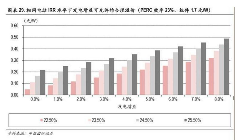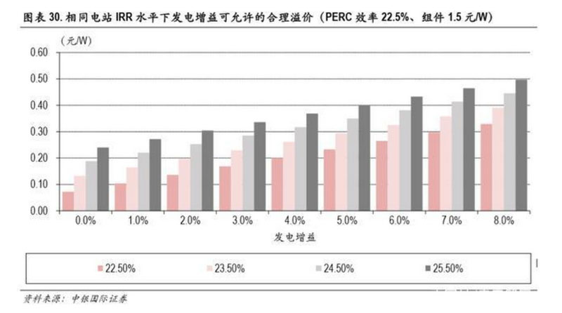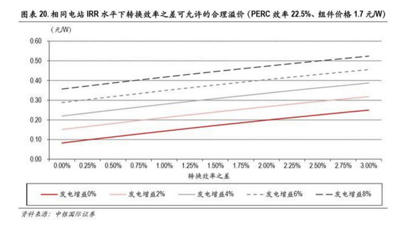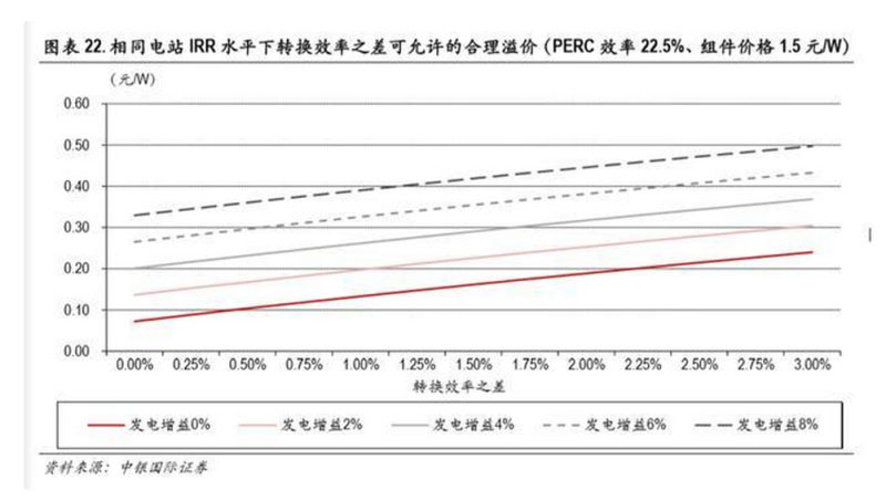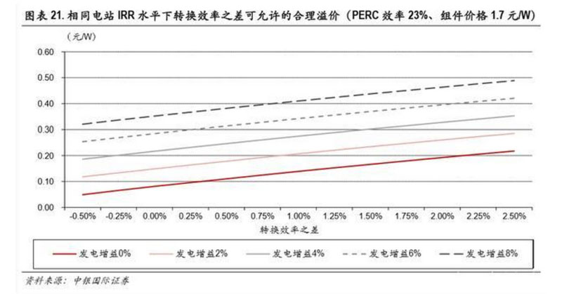 轉(zhuǎn)換效率溢價(jià)來(lái)自于發(fā)電功率提升和電站成本攤薄