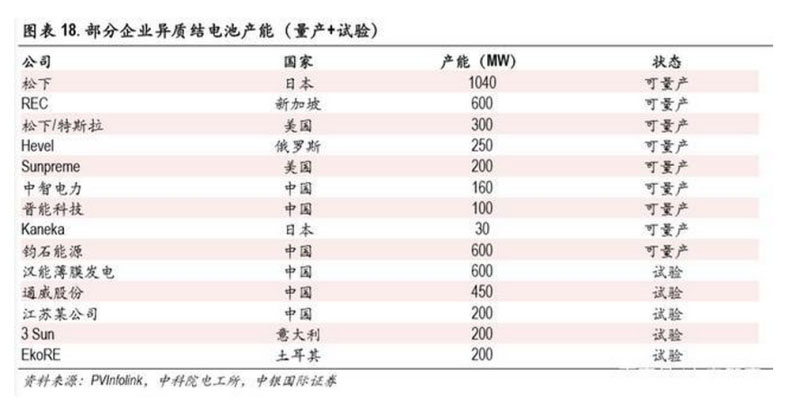 多方面優(yōu)勢(shì)帶動(dòng)產(chǎn)業(yè)化熱情:出于異質(zhì)結(jié)電池在上述多方面存在的優(yōu)勢(shì),在異質(zhì)結(jié)電池結(jié)構(gòu)專(zhuān)利過(guò) 期后,世界范圍內(nèi)異質(zhì)結(jié)電池的產(chǎn)業(yè)化開(kāi)始萌芽,國(guó)內(nèi)亦有企業(yè)和科研院所進(jìn)行研發(fā)和生產(chǎn)。近兩 年隨著試驗(yàn)產(chǎn)品轉(zhuǎn)換效率逐步提升以及制造設(shè)備的成本下降取得一定進(jìn)展,產(chǎn)業(yè)內(nèi)對(duì)異質(zhì)結(jié)電池產(chǎn) 線的投資熱情逐步提高,目前全球范圍內(nèi)已有約 5GW量產(chǎn)與試驗(yàn)產(chǎn)能。