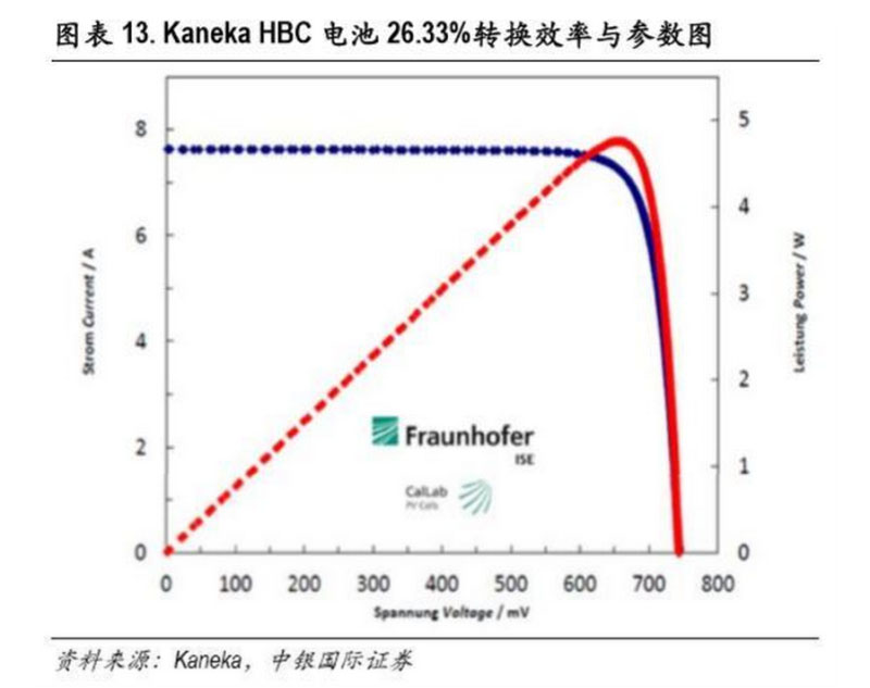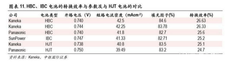 異質(zhì)結(jié)疊加 IBC技術(shù)轉(zhuǎn)換效率突破 26%:在高效光伏電池領(lǐng)域,IBC(Interdigitated Back Contact,交叉 背接觸)電池在產(chǎn)業(yè)中也頗受關(guān)注,其結(jié)構(gòu)特點(diǎn)是 p-n結(jié)和金屬電極接觸都位于電池背部,電池正面 避免了金屬柵線電極的遮擋,能夠最大限度地利用入射光,減少光學(xué)損失。日本松下、Kaneka 等公 司將 IBC電池的結(jié)構(gòu)優(yōu)點(diǎn)與異質(zhì)結(jié)電池相結(jié)合,將 p-n結(jié)轉(zhuǎn)移至背面的同時(shí)保留本征非晶硅的鈍化結(jié) 構(gòu),稱(chēng)為 HBC電池,目前已實(shí)現(xiàn)實(shí)驗(yàn)室 26.63%的轉(zhuǎn)換效率。