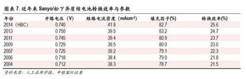 HJT電池轉(zhuǎn)換效率已在晶硅光伏電池中位居前列:HJT電池量產(chǎn)之后,日本 Sanyo/松下仍在持續(xù)研究 提高其光電轉(zhuǎn)換效率,近年來(lái) HJT電池轉(zhuǎn)換效率已在晶硅光伏電池中位居前列。