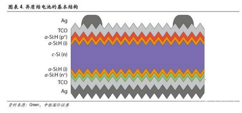 異質(zhì)結(jié)電池與同質(zhì)結(jié)電池的差異:廣義而言,p-n結(jié)由兩種不同類(lèi)型的半導(dǎo)體材料組成的太陽(yáng)能電池 均可稱(chēng)為異質(zhì)結(jié)太陽(yáng)能電池,與之相對(duì)的是同質(zhì)結(jié)電池,即 p-n結(jié)由同種半導(dǎo)體材料組成。目前實(shí)際 商業(yè)應(yīng)用的晶硅太陽(yáng)能電池基本均為同質(zhì)結(jié)電池(p-n結(jié)由晶體硅材料形成),而產(chǎn)業(yè)中一般所提到 的異質(zhì)結(jié)電池則是指 p-n結(jié)由非晶硅和晶體硅兩種材料形成的電池,其中含本征非晶硅薄膜的異質(zhì)結(jié) 電池(Heterojunction with Intrinsic Thin-Layer,HIT/HJT,下稱(chēng)“HJT電池”或“異質(zhì)結(jié)電池”)轉(zhuǎn)換效率 較為優(yōu)秀,受到的關(guān)注度相對(duì)較高,與大規(guī)模產(chǎn)業(yè)化的距離亦相對(duì)更近。