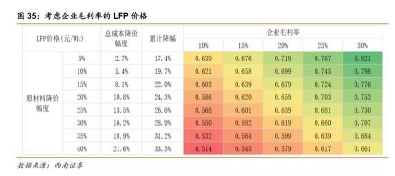 3) 進(jìn)一步假設(shè)原材料(包含正極、負(fù)極、隔膜、電解液、銅箔、甲基、電池箱)價(jià)格 降幅 20%