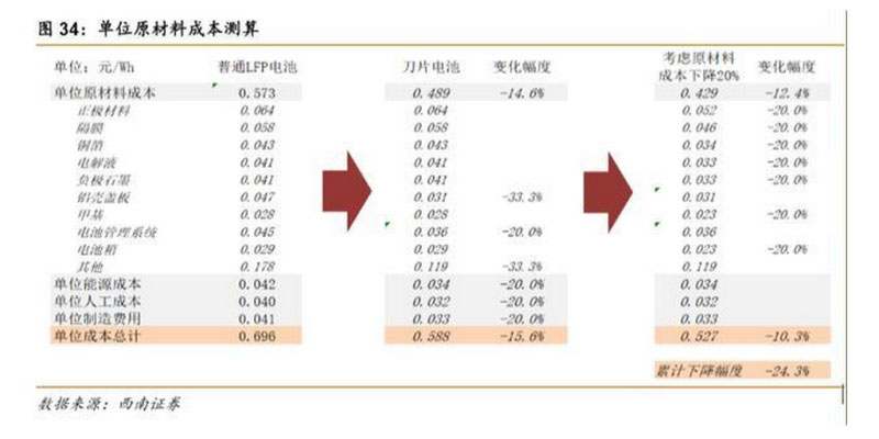 3、 刀片電池和 CTP 方案成本可降 15%