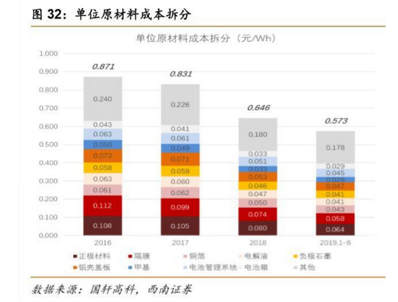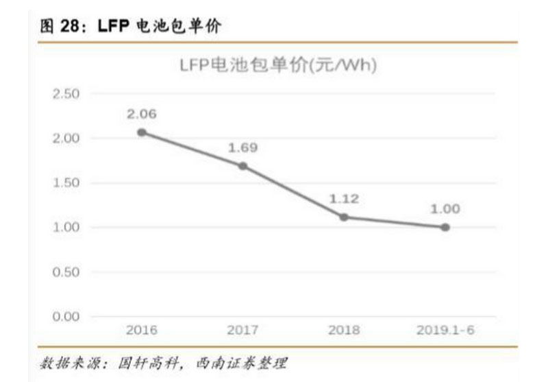 根據(jù) 2019 年 9 月 17 日國軒高科發(fā)布的《關(guān)于請做好國軒高科公開發(fā)行可轉(zhuǎn)債發(fā)審委會(huì) 議準(zhǔn)備工作的函》的回復(fù)中的內(nèi)容,國軒高科 2016-2019 年上半年磷酸鐵鋰電池的單價(jià)分別 為 2.06 元/Wh,1.69 元/Wh,1.12 元/Wh,1.00 元/Wh,對(duì)應(yīng)的毛利率分別為 48.7%,39.8%, 28.8%和 30.4%。