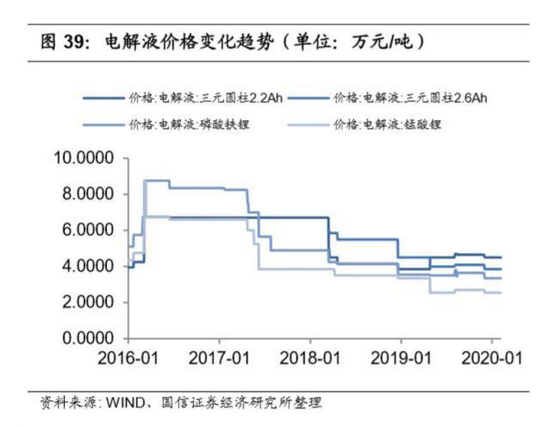 高鎳化對電解液提出升級需求,龍頭企業(yè)布局添加劑和新型鋰鹽增強差異化競 爭能力。行業(yè)對續(xù)航里程及能量密度的提升推動了電池高鎳化進展,而動力電 池從 333/523 到 622/811 的發(fā)展過程也給電解液帶來了巨大的挑戰(zhàn):高鎳三元 正極的吸水性強、穩(wěn)定性低,在高溫條件下鎳元素的催化作用會加速電解液的 分解,使電解液氧化、產(chǎn)氣,極片產(chǎn)生裂縫并且溶出的錳、鈷等過渡金屬離子 還會破壞負極上的 SEI 膜,致使在高溫環(huán)境下電池的容量、循環(huán)和安全性都受 到嚴重影響。從目前的改進措施來看,新型溶劑和鋰鹽雖然得到了部分應(yīng)用, 但出于多方面性能要求和成本考慮,新添加劑的開發(fā)仍是電解液性能提升的關(guān) 鍵。同時新型鋰鹽的布局也有助于龍頭公司實現(xiàn)高端化競爭策略。
