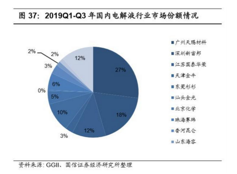 電解液行業(yè)集中度提升,龍頭企業(yè)盈利情況有望復(fù)蘇。2018 年伴隨行業(yè)價格戰(zhàn) 的進行,行業(yè)集中程度及一步提升,較為明顯的變化是第一梯隊新宙邦的行業(yè) 份額提升明顯,江蘇國泰華榮市場份額下降明顯,而第二三梯隊包括珠海賽維、 香河昆侖、天津金牛等市場份額急劇萎縮。伴隨行業(yè)價格戰(zhàn)延續(xù)以及下游客戶 對于電解液產(chǎn)品要求的提升,行業(yè)尾部產(chǎn)能將進一步出清,同時對現(xiàn)有廠商在 技術(shù)研發(fā)和產(chǎn)能布局方面也提出更高的要求。