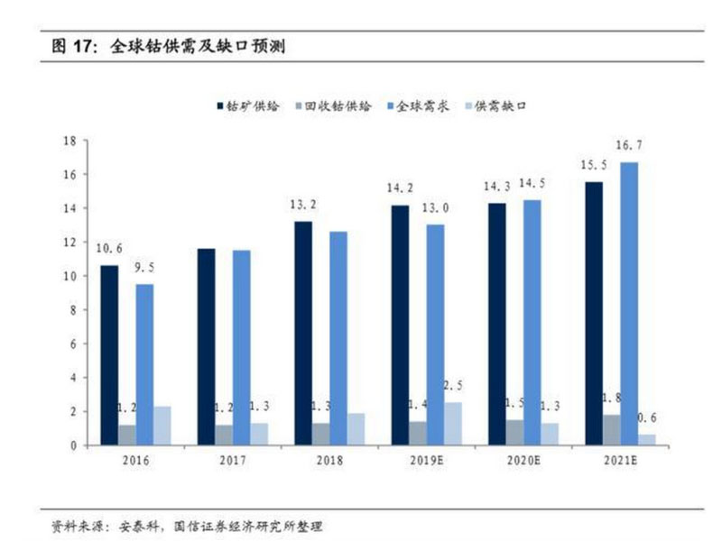 剛果民主政策變化造成行業(yè)擾動。2018年3月9日,民主剛果頒布新《礦業(yè)法》, 在一定程度上增加了未來該國鈷原料開采以及出口成本。根據(jù)新礦業(yè)法,民主 剛果的普通金屬出口稅率將從2%提高到3.5%,稀缺類金屬的出口稅率則從2% 提高到 5%,同時 2018 年 12 月 3 日剛果(金)頒布法令宣布金屬鈷為“戰(zhàn)略礦 物”,將其稅率由此前的 3.5%大幅調(diào)升至 10%。