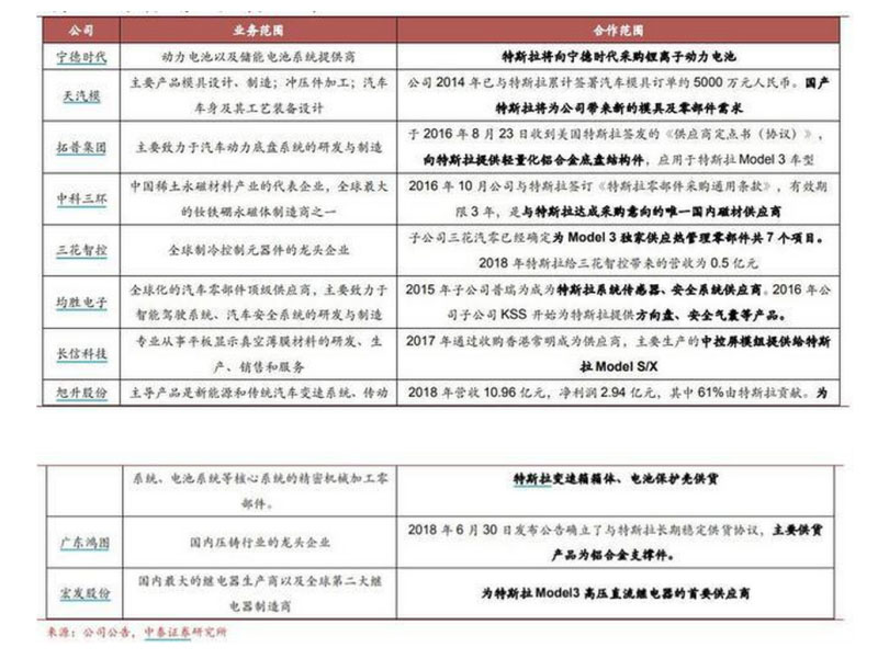 特斯拉國(guó)產(chǎn)供應(yīng)商相關(guān)訂單。數(shù)據(jù)來(lái)源:中泰證券