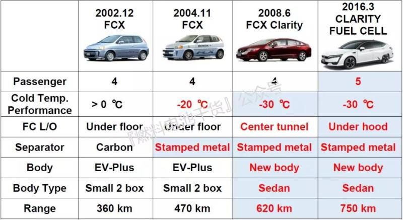 2002年12月,本田率先上市租賃版燃料電池汽車;2004年,首次安裝本田自制燃料電池電堆;2008年,向市場推出轎車版燃料電池汽車FCX Clarity;2016年,推出真正量產版燃料電池汽車FCV Clarity,實現(xiàn)高性能、長壽命燃料電池動力總成與傳統(tǒng)發(fā)動機V6總成體積相當。