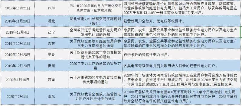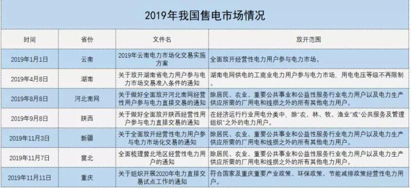 2019下半年,各省紛紛出臺(tái)相關(guān)舉。中電傳媒電力傳媒數(shù)據(jù)研發(fā)中心統(tǒng)計(jì)顯示,截至目前,我國已經(jīng)有云南、湖南、河北南網(wǎng)、陜西、冀北、重慶、新疆、湖北、遼寧和吉林、寧夏、貴州15省區(qū)市宣布全面放開經(jīng)營性電力用戶發(fā)用電計(jì)劃。