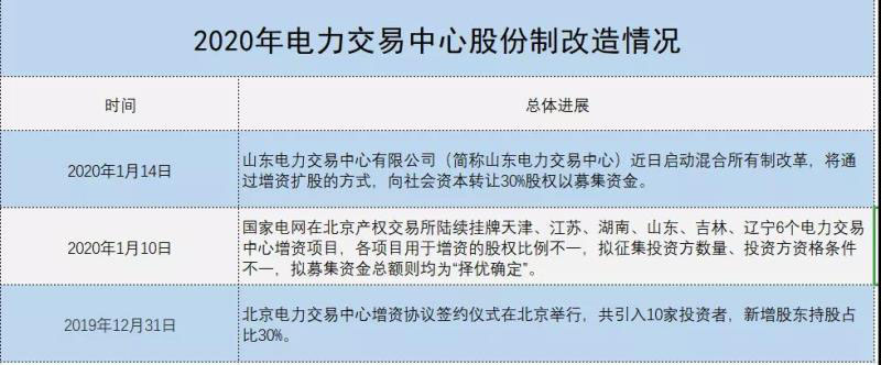 2020年,國家電網(wǎng)轄區(qū)內(nèi)電力交易中心股份制改革將進(jìn)一步提速。年初以來,天津、江蘇、遼寧、湖南、山東、吉林電力交易中心已經(jīng)啟動(dòng)增資擴(kuò)股措施。預(yù)計(jì),2020年,電力交易中心股份制改革范圍將進(jìn)一步擴(kuò)大,并逐步覆蓋全國,電力交易中心獨(dú)立步伐全面提速。