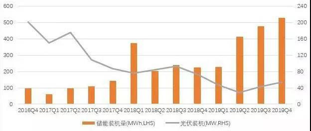 特斯拉2016-2019年度光伏與儲(chǔ)能裝機(jī)量(單位MW、MWh)