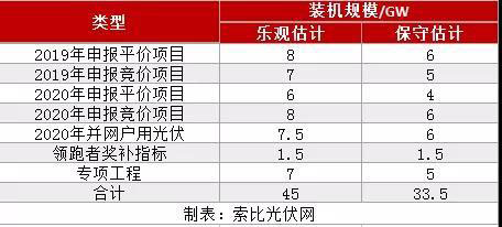 關(guān)于2020年國內(nèi)市場,此前索比光伏網(wǎng)和部分業(yè)內(nèi)人士的預(yù)期為40GW左右,但隨著補(bǔ)貼下調(diào),部分項(xiàng)目的進(jìn)展很可能推遲,相關(guān)資金或?qū)⑥D(zhuǎn)向更容易獲取補(bǔ)貼的地區(qū)。預(yù)計(jì)全年新增裝機(jī)規(guī)模在33.5-45GW,不排除低于35GW的可能。具體包括: