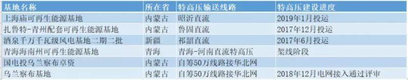 部分特高壓外送通道線路及配套基地建設(shè)情況表