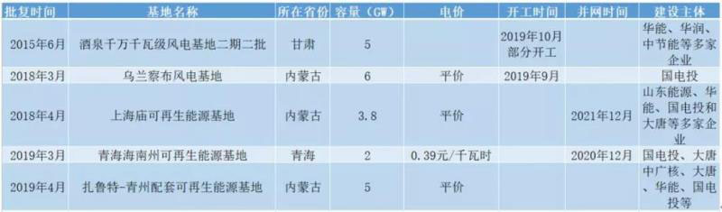 在已經(jīng)獲得能源局批復(fù)的風(fēng)電基地中有三個(gè)為平價(jià)項(xiàng)目。其中,青海海南州可再生能源基地是青海省海南州特高壓外送基地電源配置項(xiàng)目,目前看來其為有補(bǔ)貼的項(xiàng)目,但是其補(bǔ)貼能否拿到會受并網(wǎng)進(jìn)度影響。