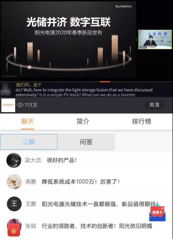 2月14日,“PAT2020愛光伏一生一世 光儲并濟(jì) 數(shù)字互聯(lián)先進(jìn)技術(shù)研討會”如約面向全球直播。會上,震撼升級的集中逆變器SG3125HV從降低度電成本(LCOE)、加強(qiáng)光儲深度融合和提升電網(wǎng)支撐能力入手,直擊平價上網(wǎng)痛點。