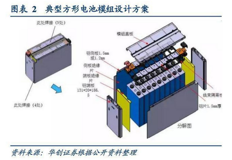 電池通過模組形式安裝于電池包中,其物理結(jié)構(gòu)設(shè)計可以對電芯起到支撐、固定和保護作用,方便對電芯進行機械強度,電性能,熱性能和故障處理等方面管理。