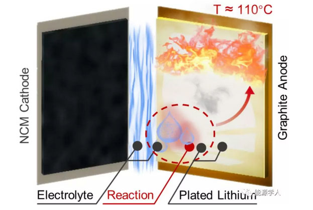 傳統(tǒng)的觀點認為,鋰離子電池的熱失控是由于電池內(nèi)部升溫造成聚烯烴隔膜收縮甚至融化導致的內(nèi)短路所致[1]。最新的研究表明,對于不同的電池體系和濫用條件來說,其電池熱失控的機制不盡相同。高比能電池內(nèi)部正負極之間的交叉反應、過充或低溫循環(huán)造成的負極側(cè)析鋰等因素都有可能引發(fā)電池熱失控。在這一方面,歐陽明高院士團隊做出了系統(tǒng)而深入的成果。